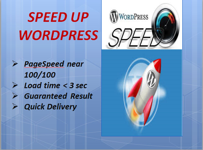 Welcome to my Gig! :)I will professionally speed up, optimize and increase the performance of your WordPress website to 90+ page speed and less than 3 secs load time on GTmetrix with Premium Service. If others failed to solve your issue, I will provide 100% highspeed score for your WP website. A faster site reduces the bounce rate & provides a better user experience.