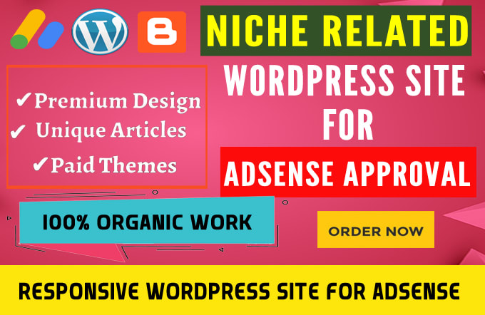 Note: Before Order Please Inbox Me For Work Discussion To Avoid CancellationsIf You are Looking For a Niche Related WordPress Site For Adsense Approval Then You Are in right place i will design wordpress Website For You to Get Adsense Approval In These Days Getting Adsense Approval is Not Easy Task You Will Must Need To Write Unique Articles And Design A User Friendly Website For Adsense So i will design wordpress Website And I Will Write Articles For You to Get Adsense Approval.